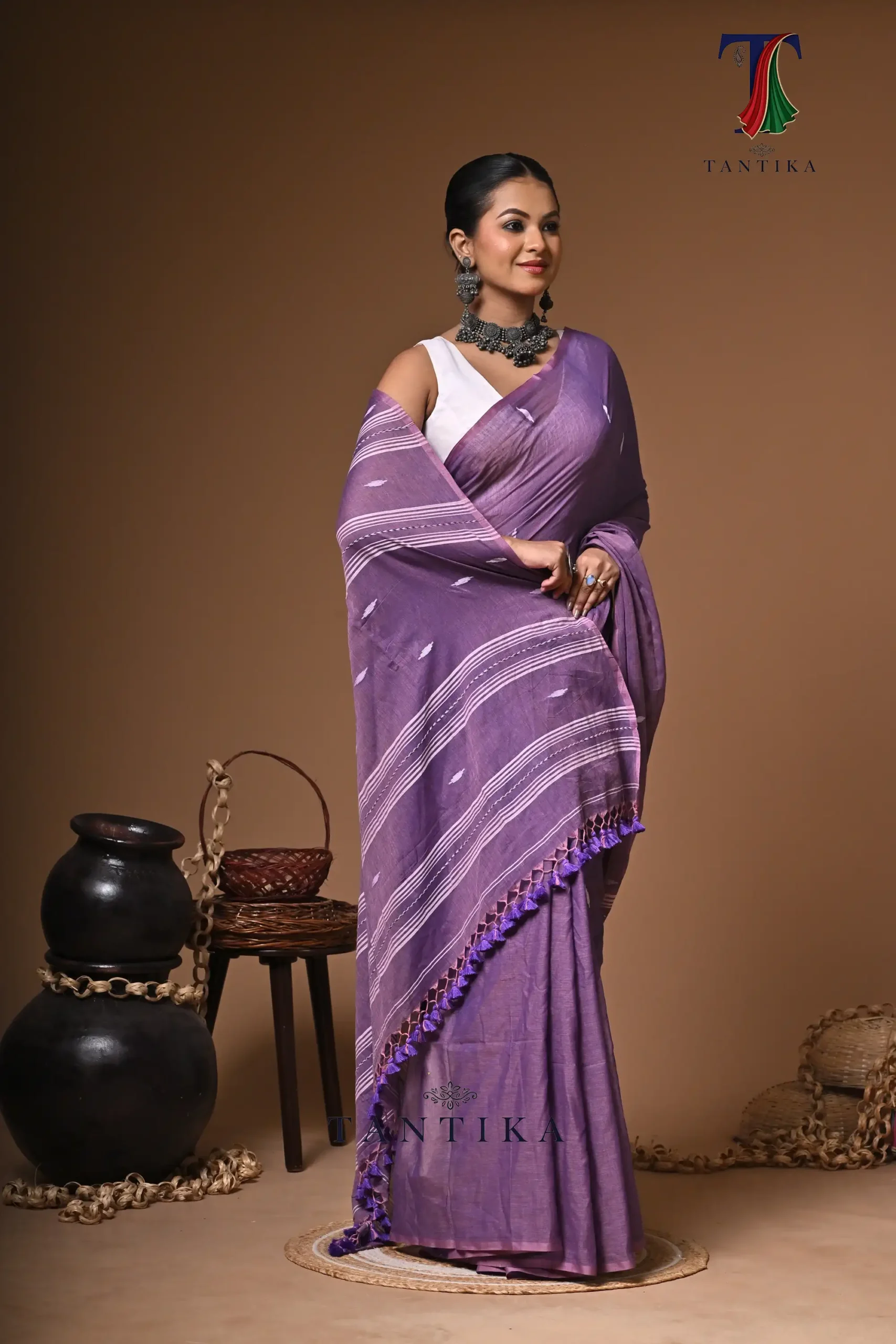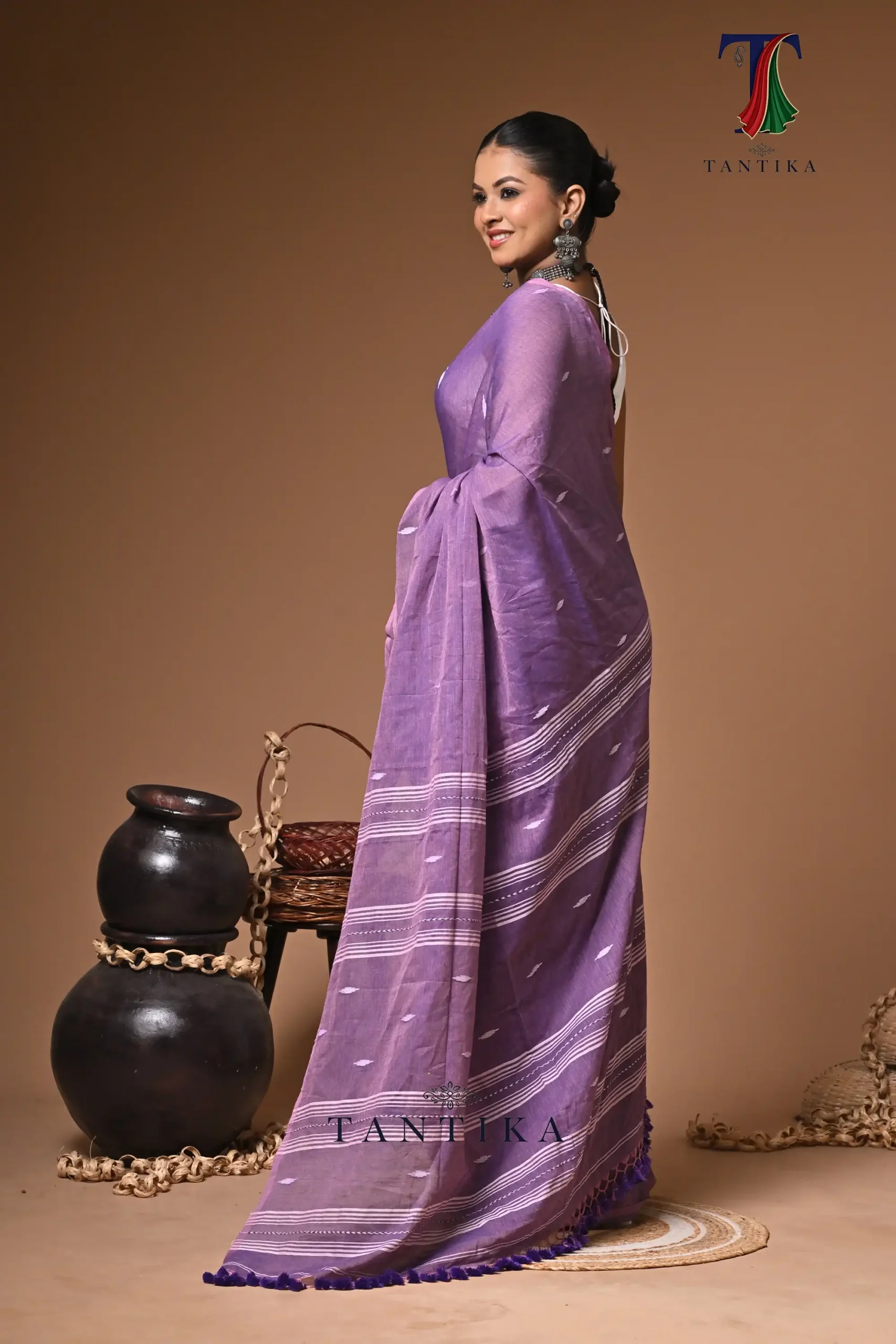 Maharani violet mull cotton handloom Saree