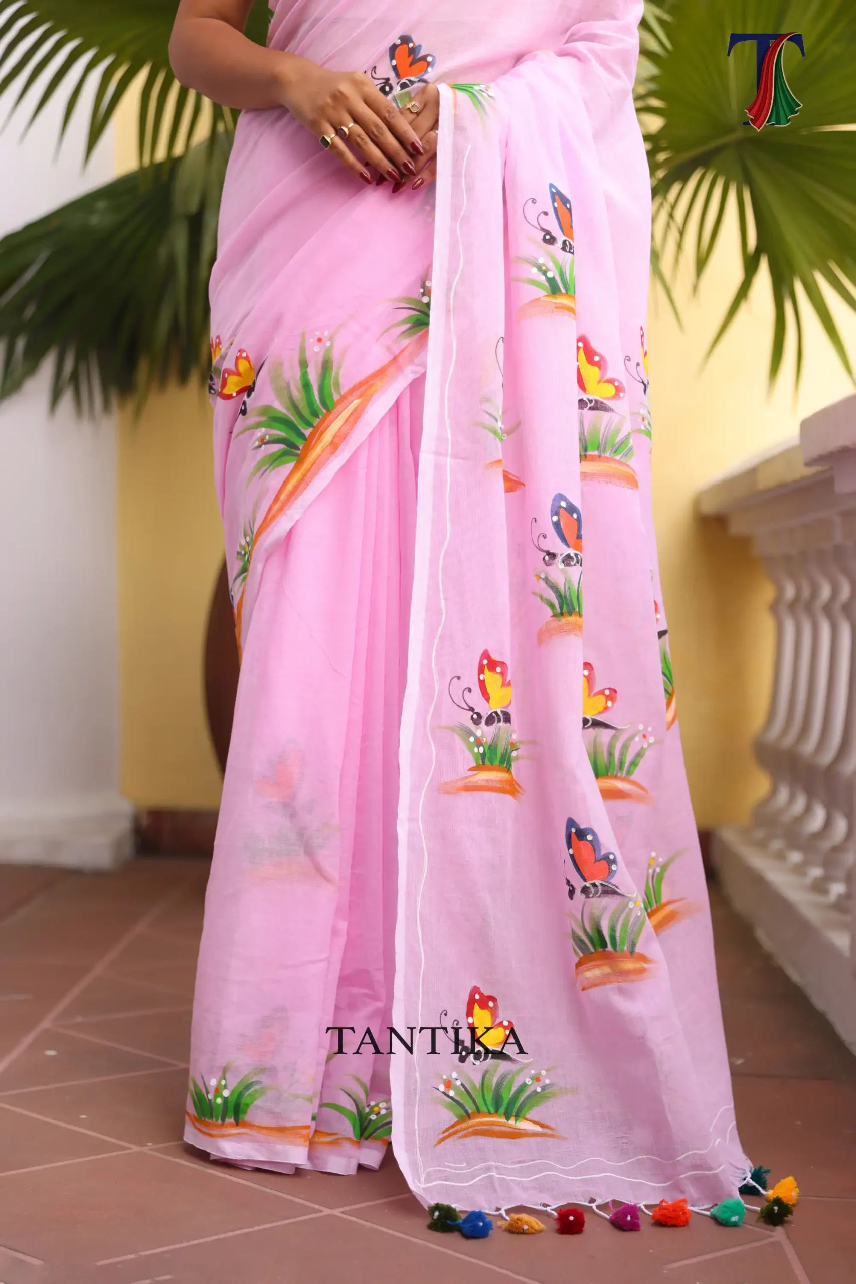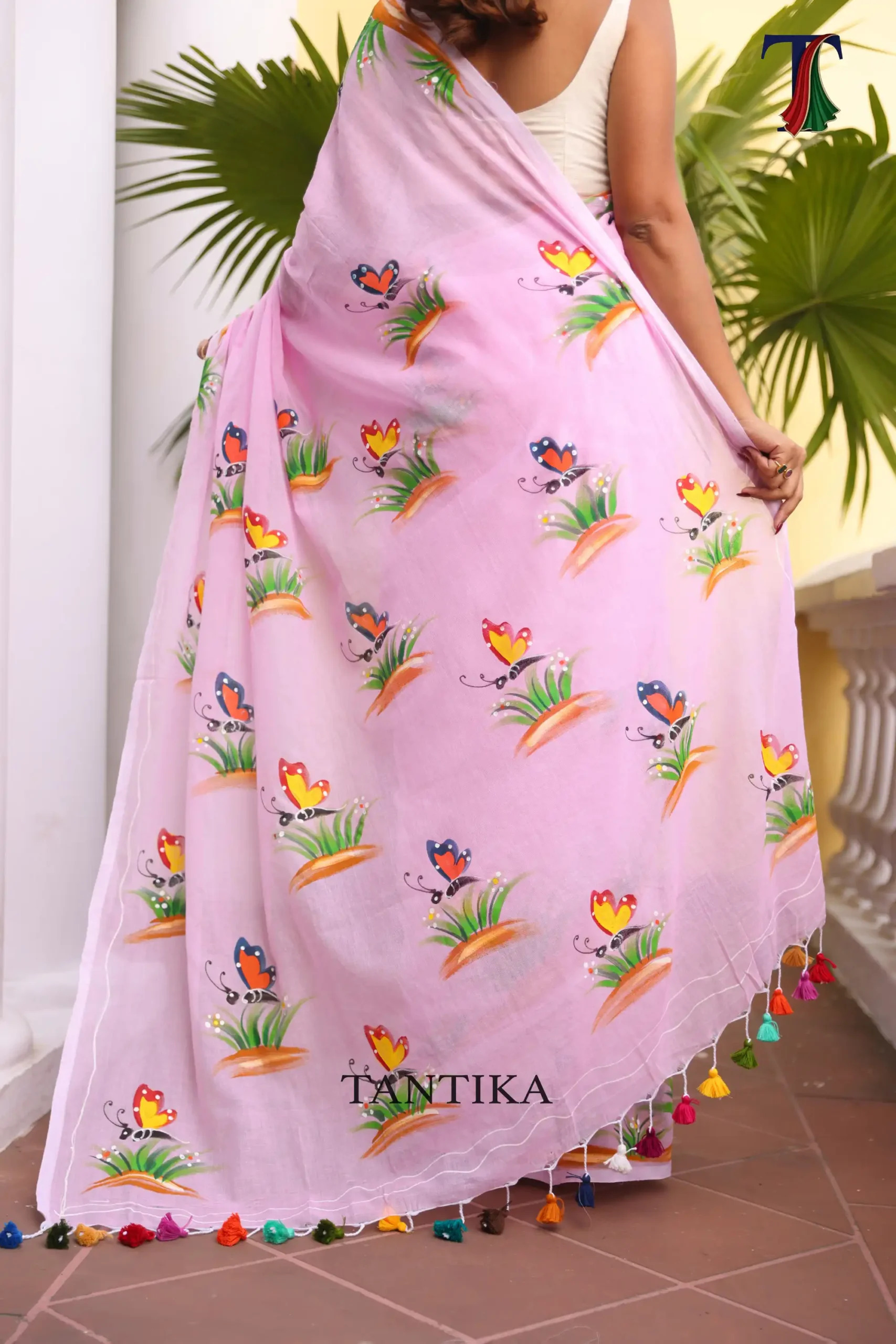 Pure Mull Cotton Butterfly Hand Printed Saree