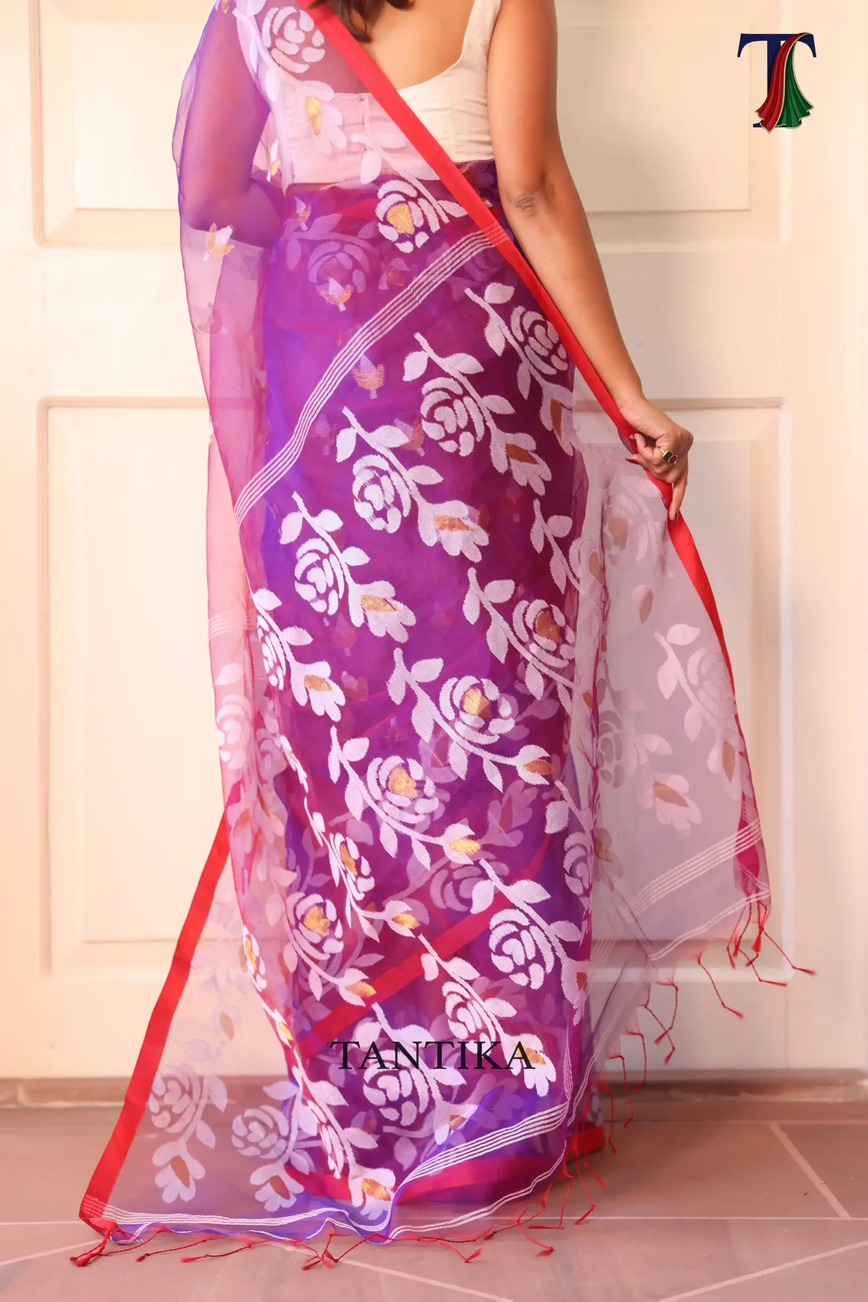 Pure Masline Rose Jamdani saree