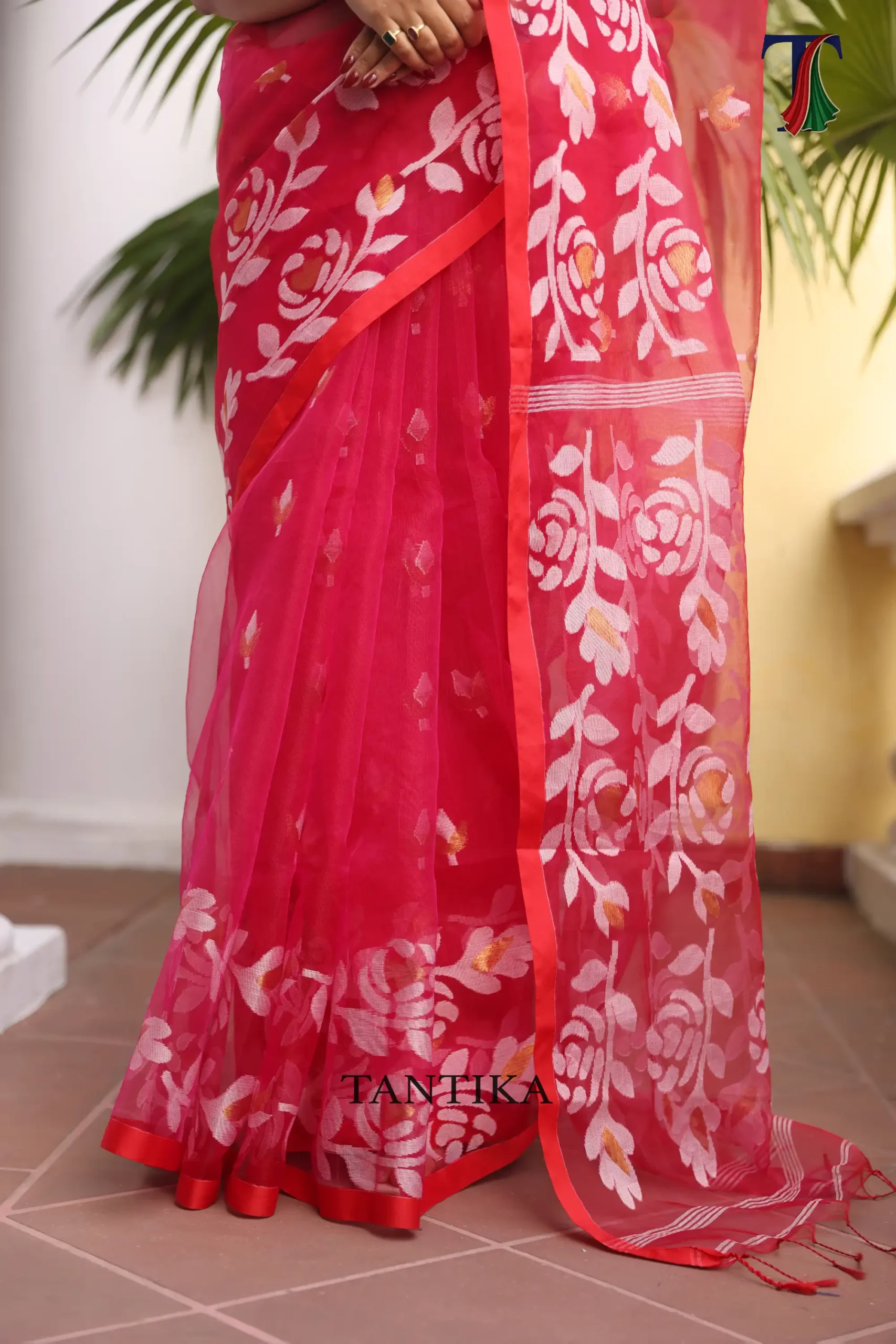 Pure Masline Rose Jamdani saree