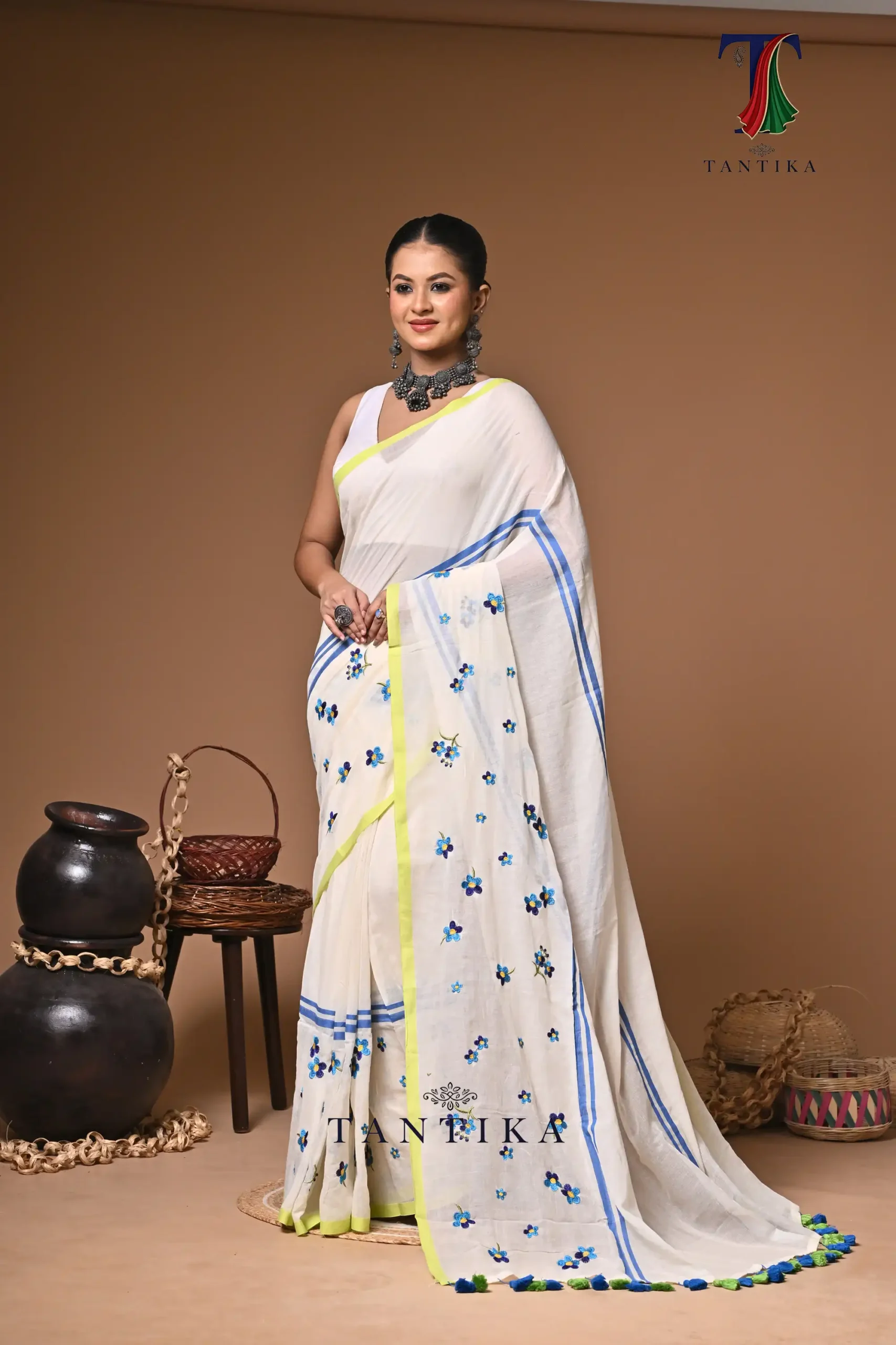 Rajrani mull cotton embroidery handloom Saree