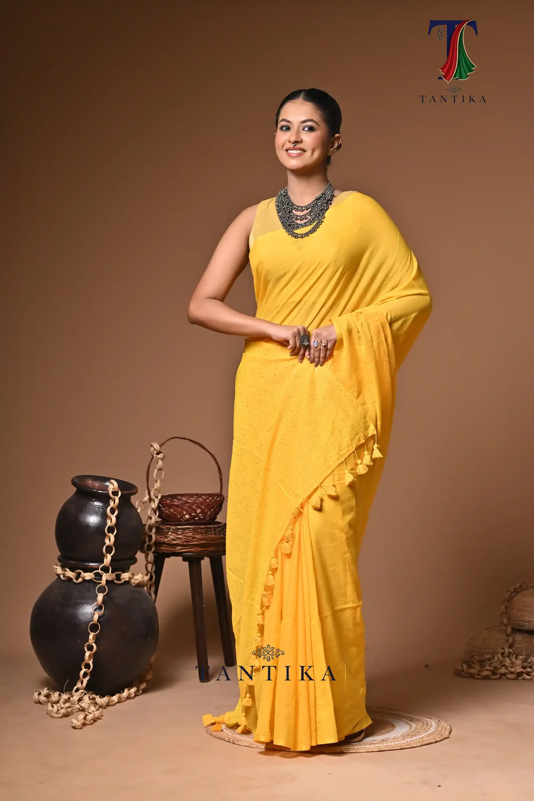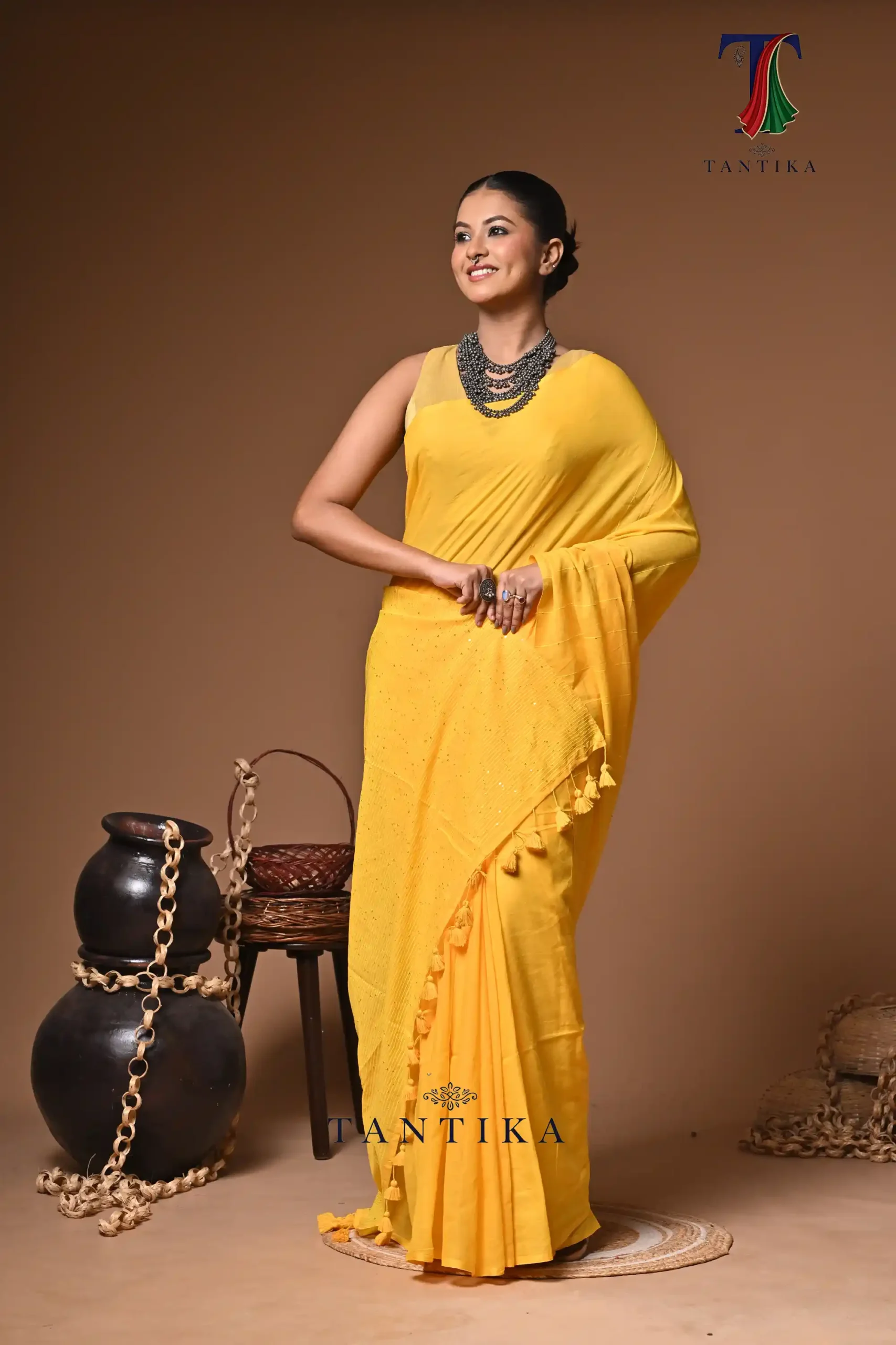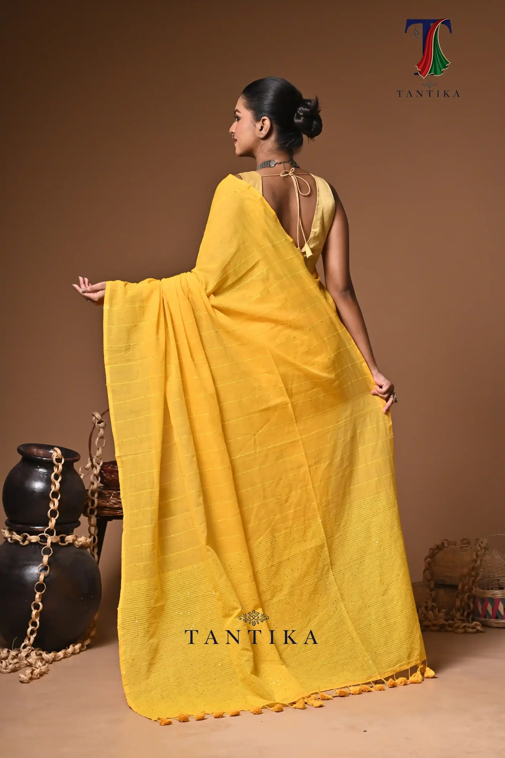 Roshni Yellow Mull Cotton Sequence Handloom Saree