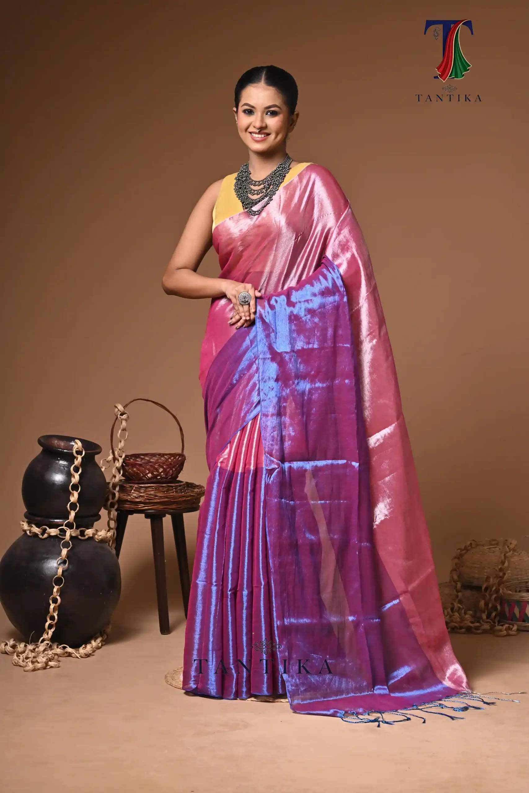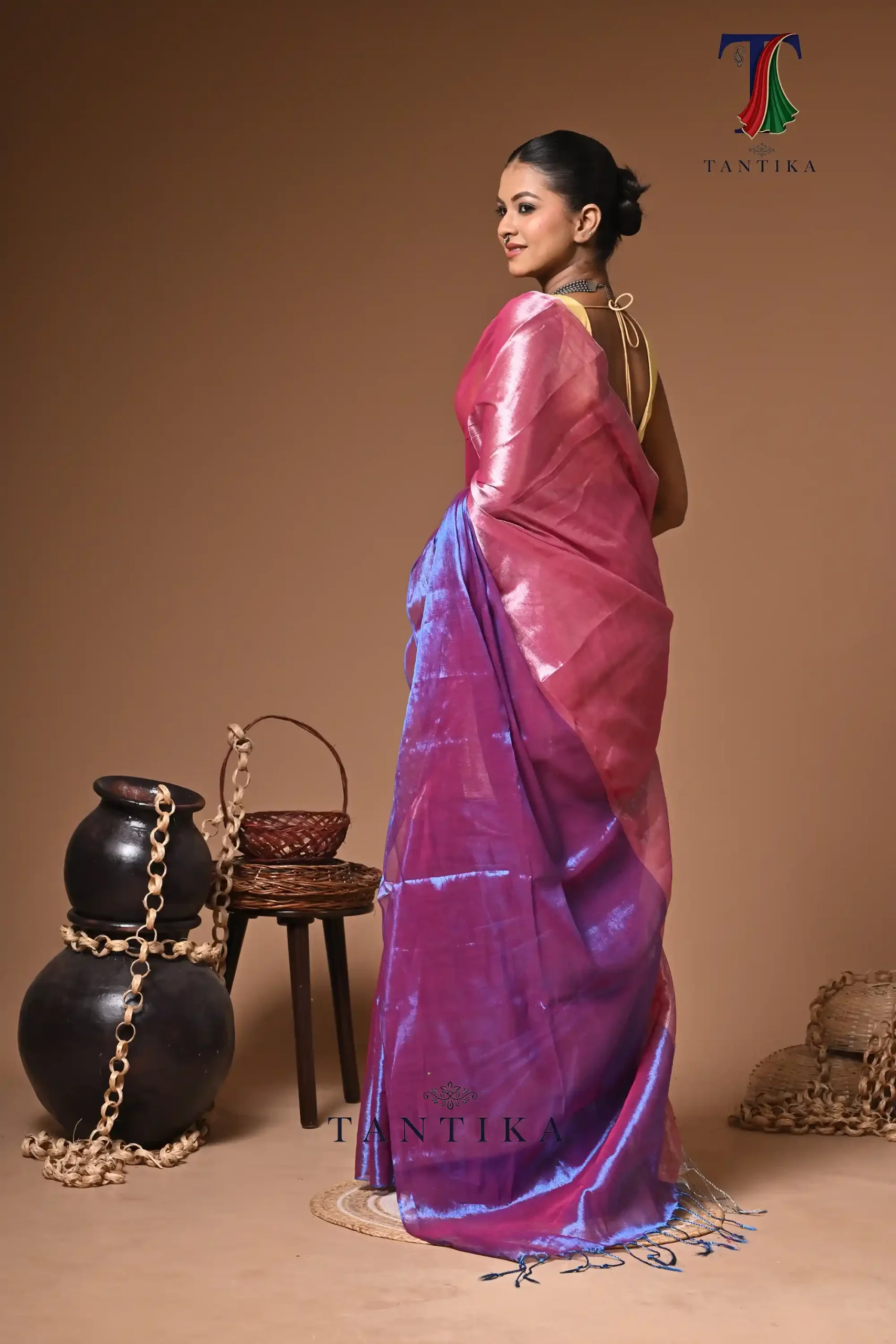 Sunehri tissue cotton handloom Saree