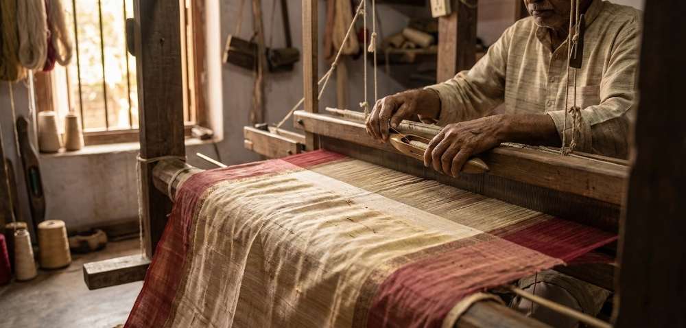 Skilled artisans use traditional handlooms to weave each Matka Silk Saree.